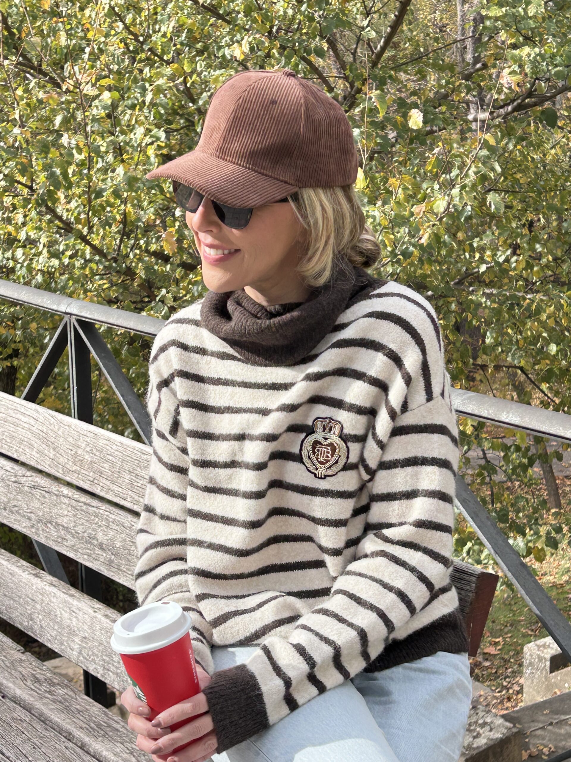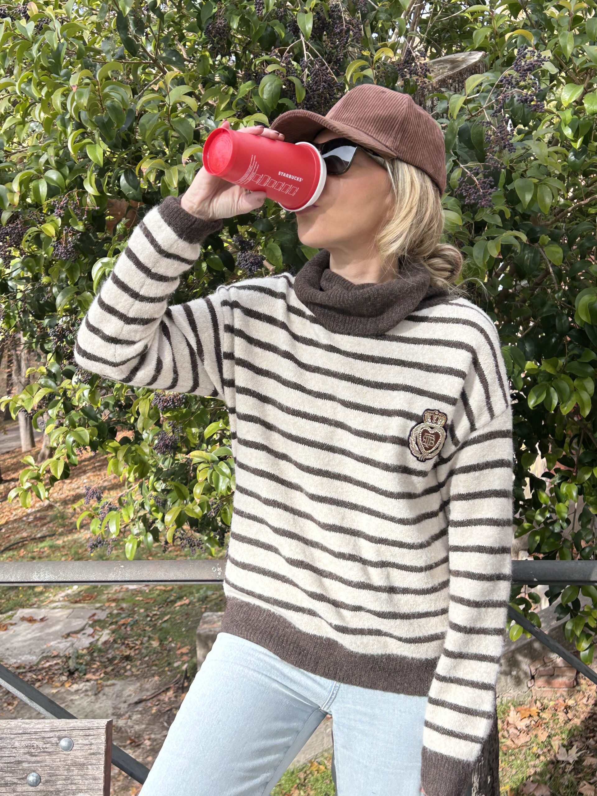 Jersey de rayas con cuello alto. Detalle de escudo en relieve.