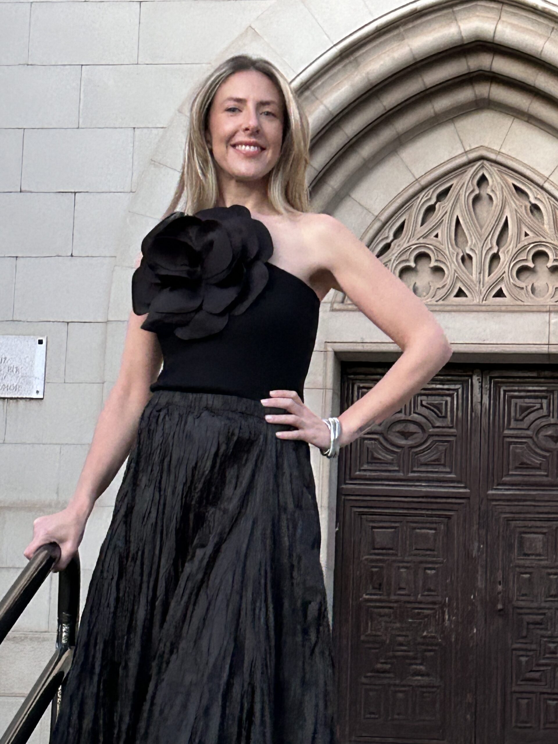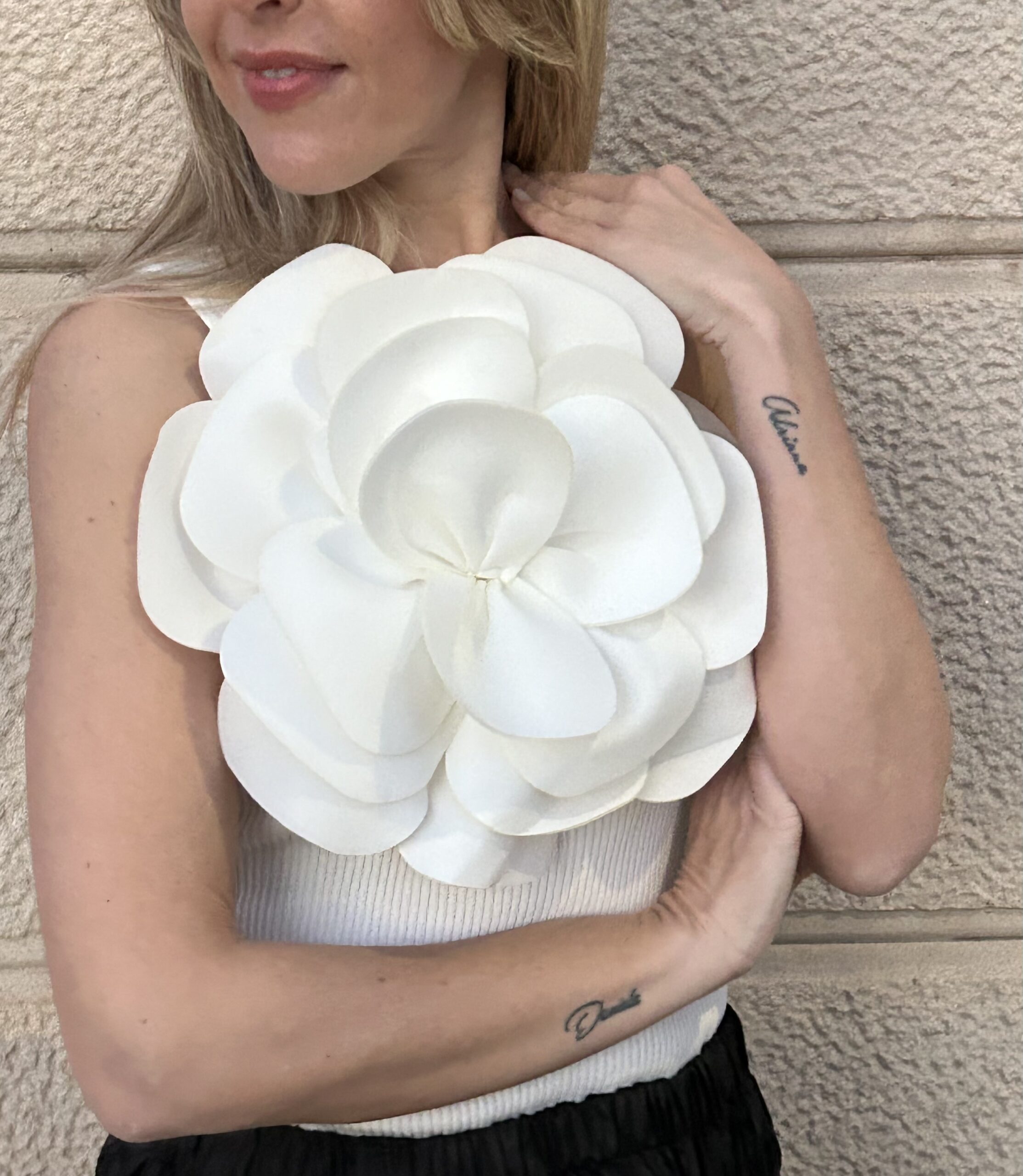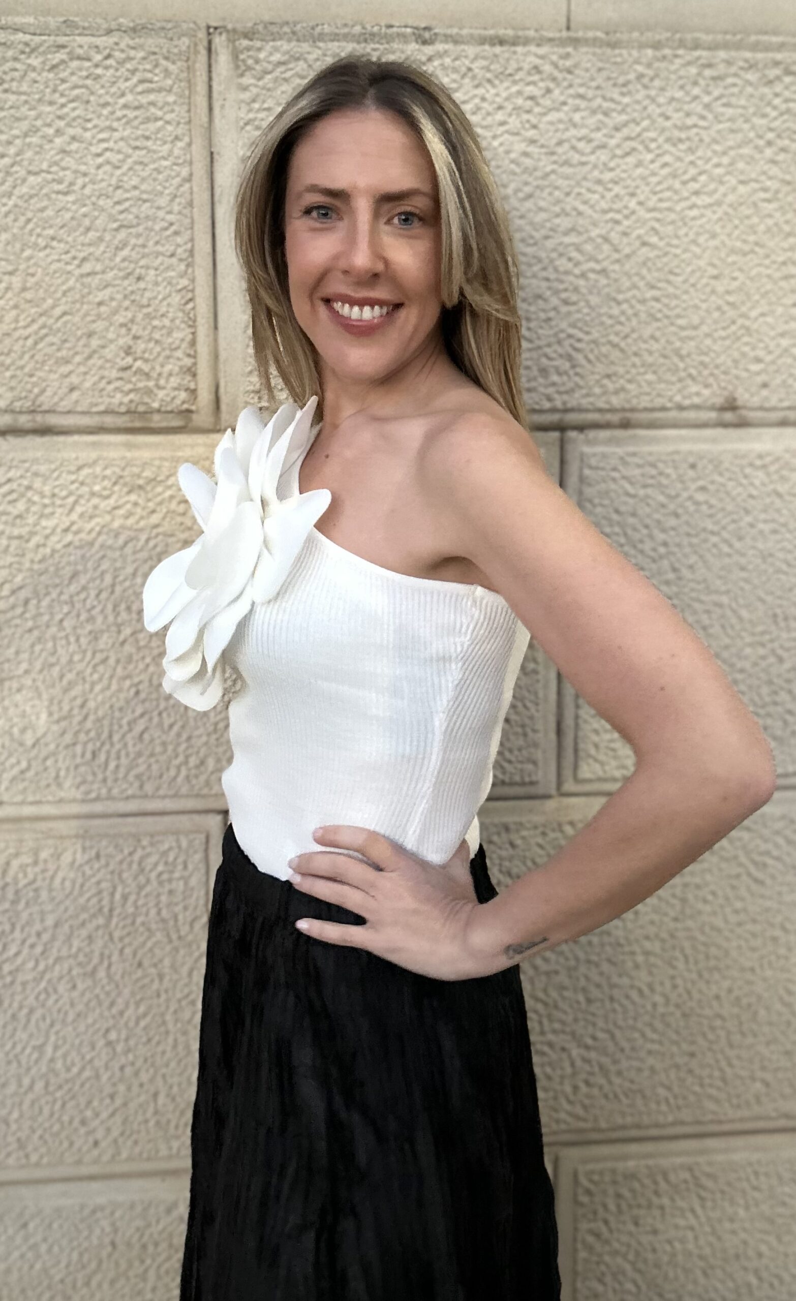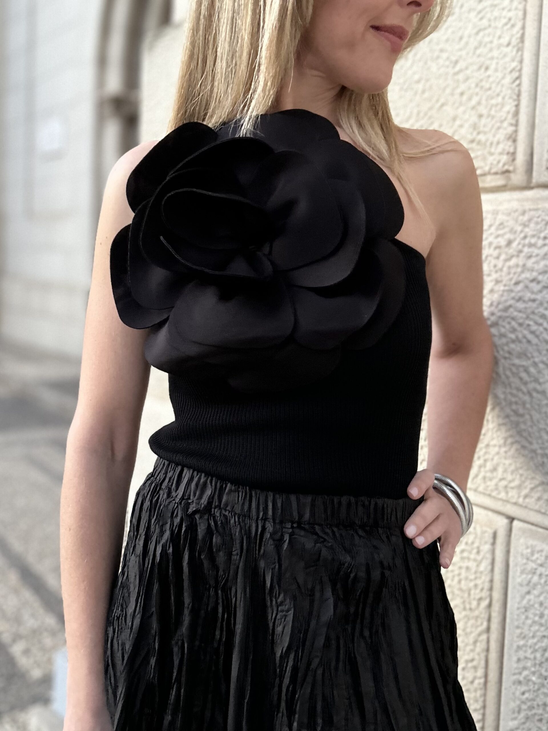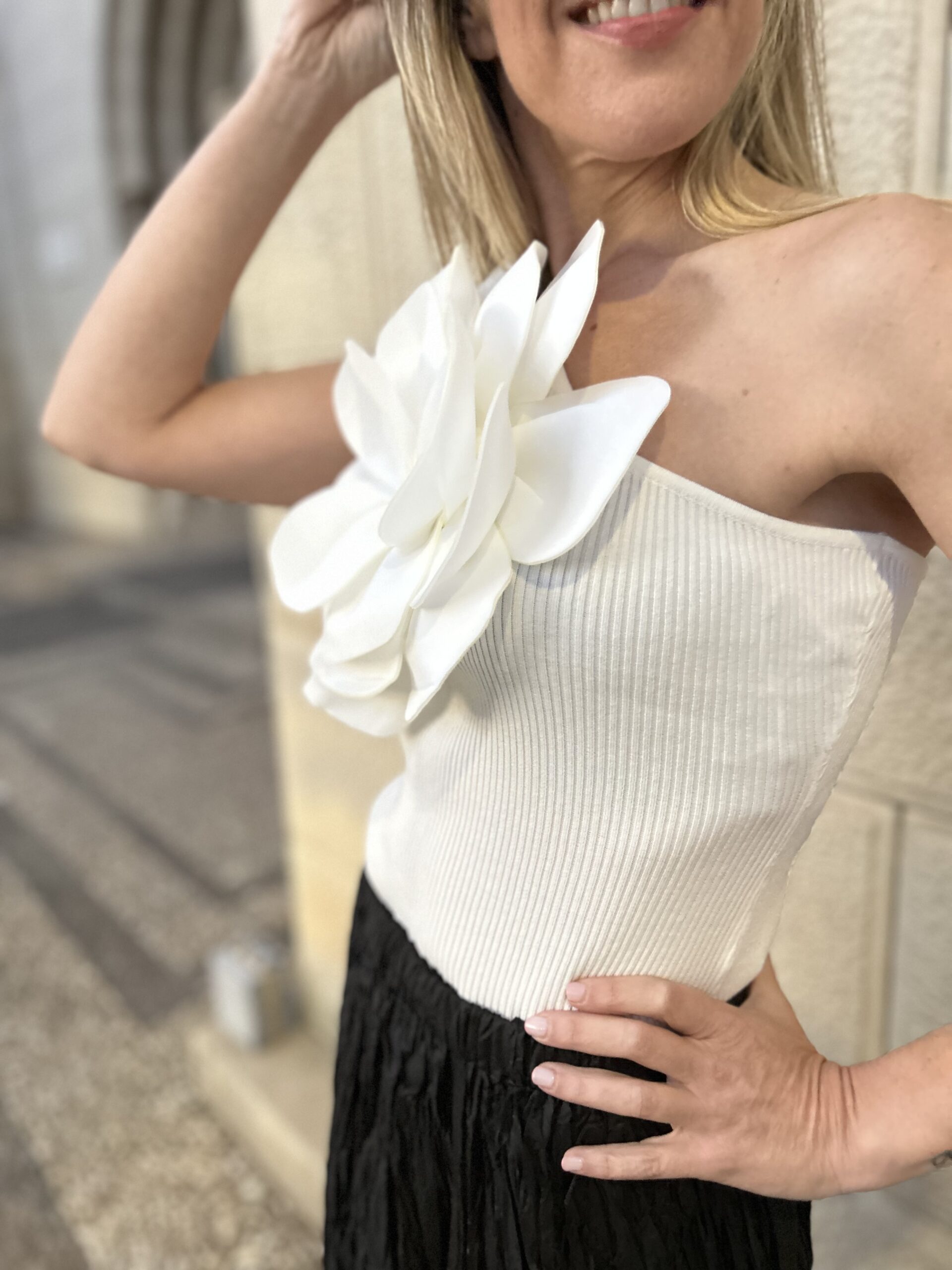 Top de canalé asimétrico con hombro izquierdo descubierto.