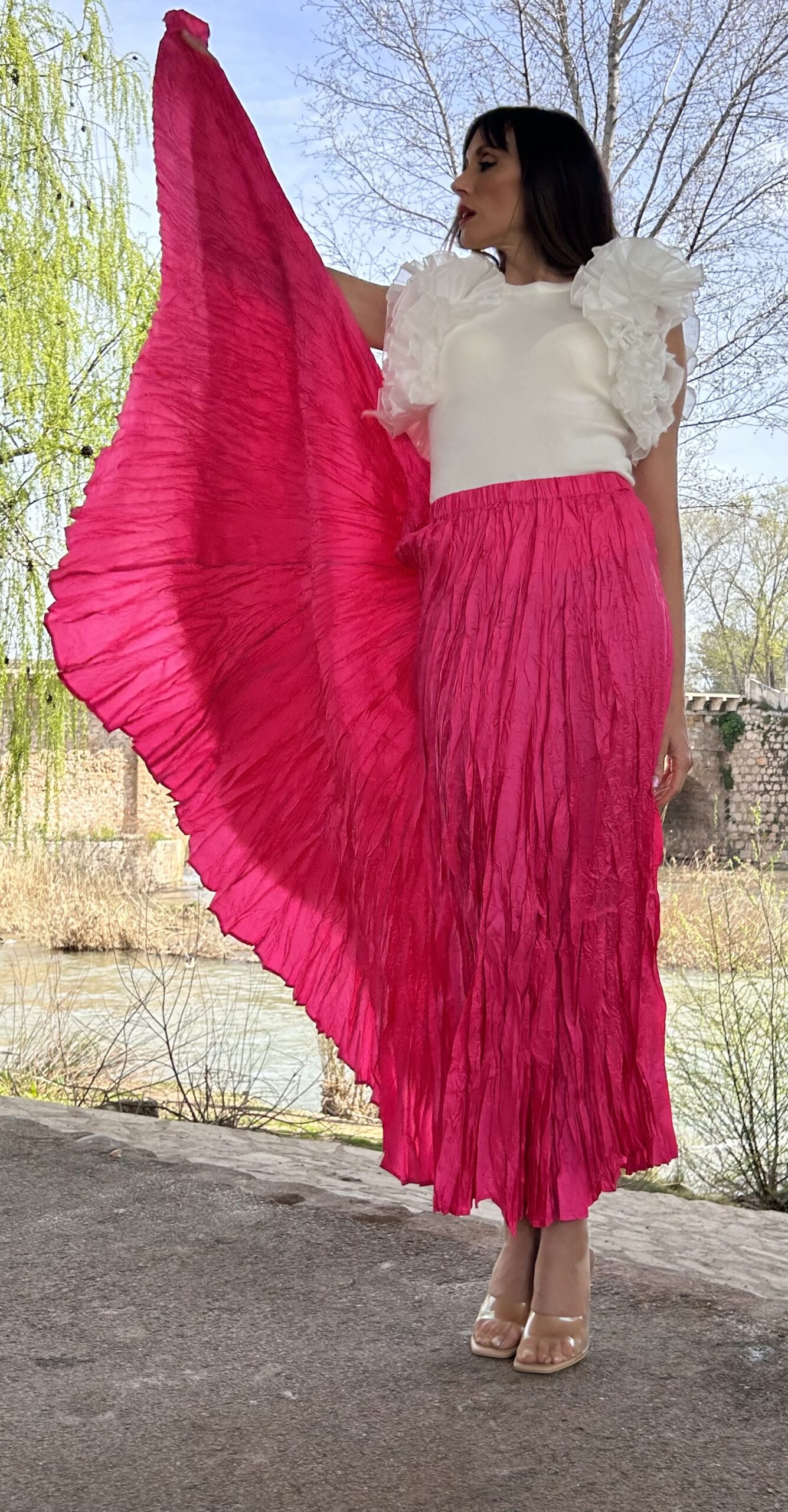 Se recomienda lavar a mano en agua fría y tender en percha. No se recomienda plancha para que no pierda las arrugas propias del tejido.
