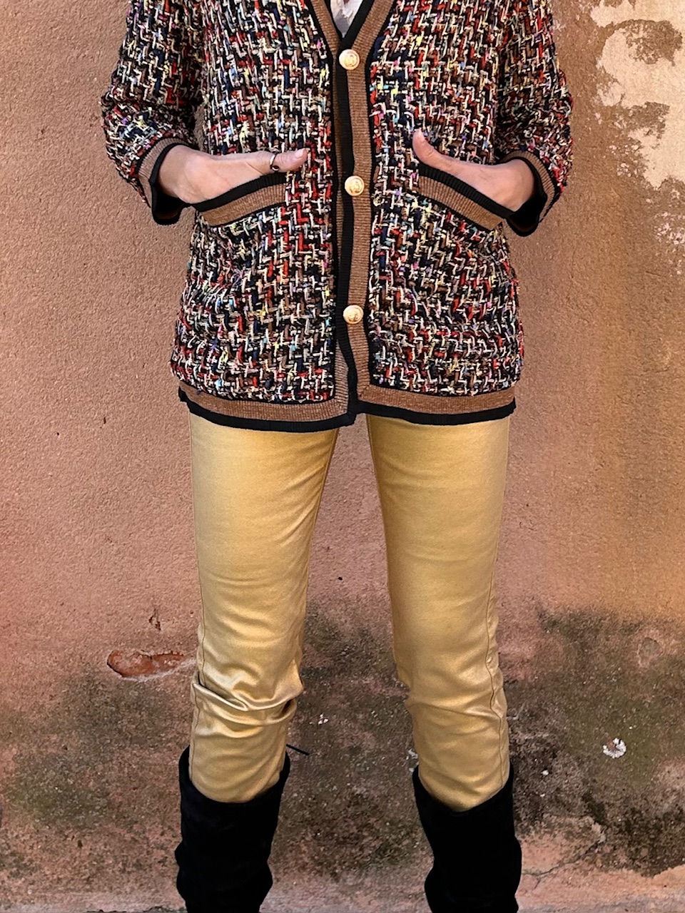 Pantalón en tejido lúrex dorado, de corte recto y forrado con tejido cálido.